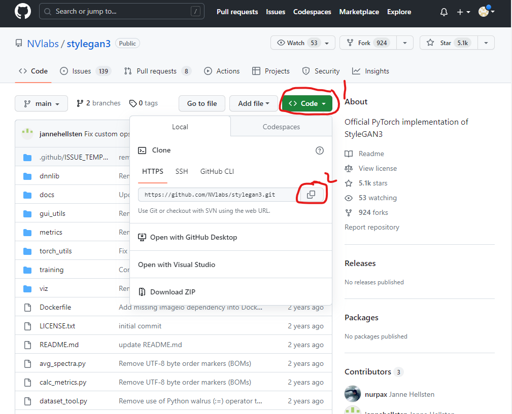 - git clone으로 stylegan3 폴더를 설치해 주고 stylegan3 경로로 들어갑니다