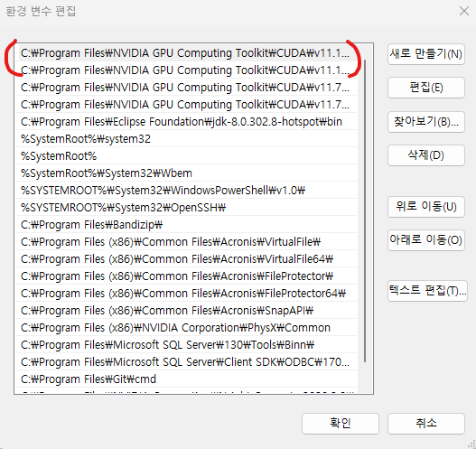 저는 제 컴퓨터와 맞는 cuda 11.1과 cudnn 8.1.1로 설치하였습니다