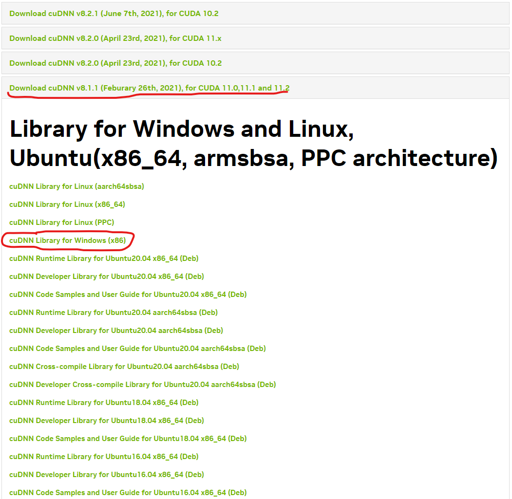 밑에 링크로 들어가서 cudnn v8.1.1 cuda 11.0,11.1 and 11.2를 클릭하셔서 다운로드하여 주세요