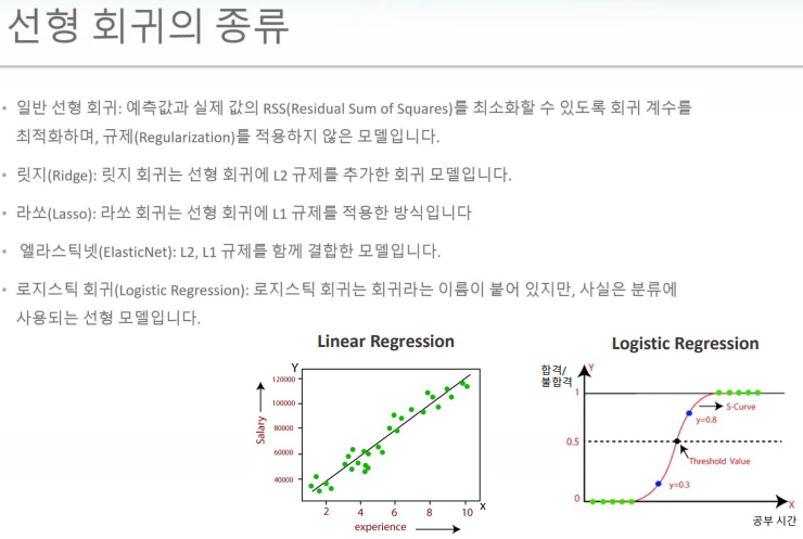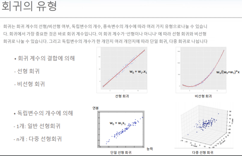 - 다중 선형회귀 : X1값, X2값 (값이 상승하는데 영향을 주는 조건이 늘어남)