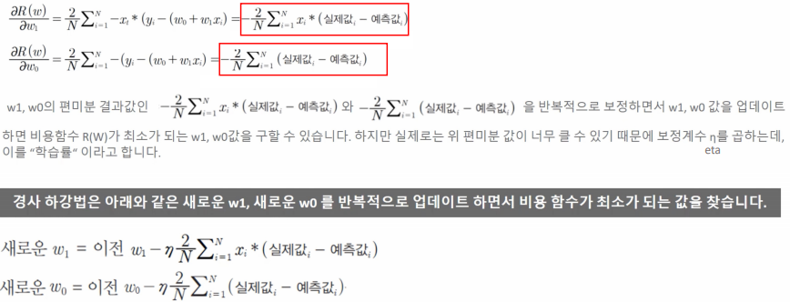 - 경사 하강법은 W0와 W1을 구하는 식이다