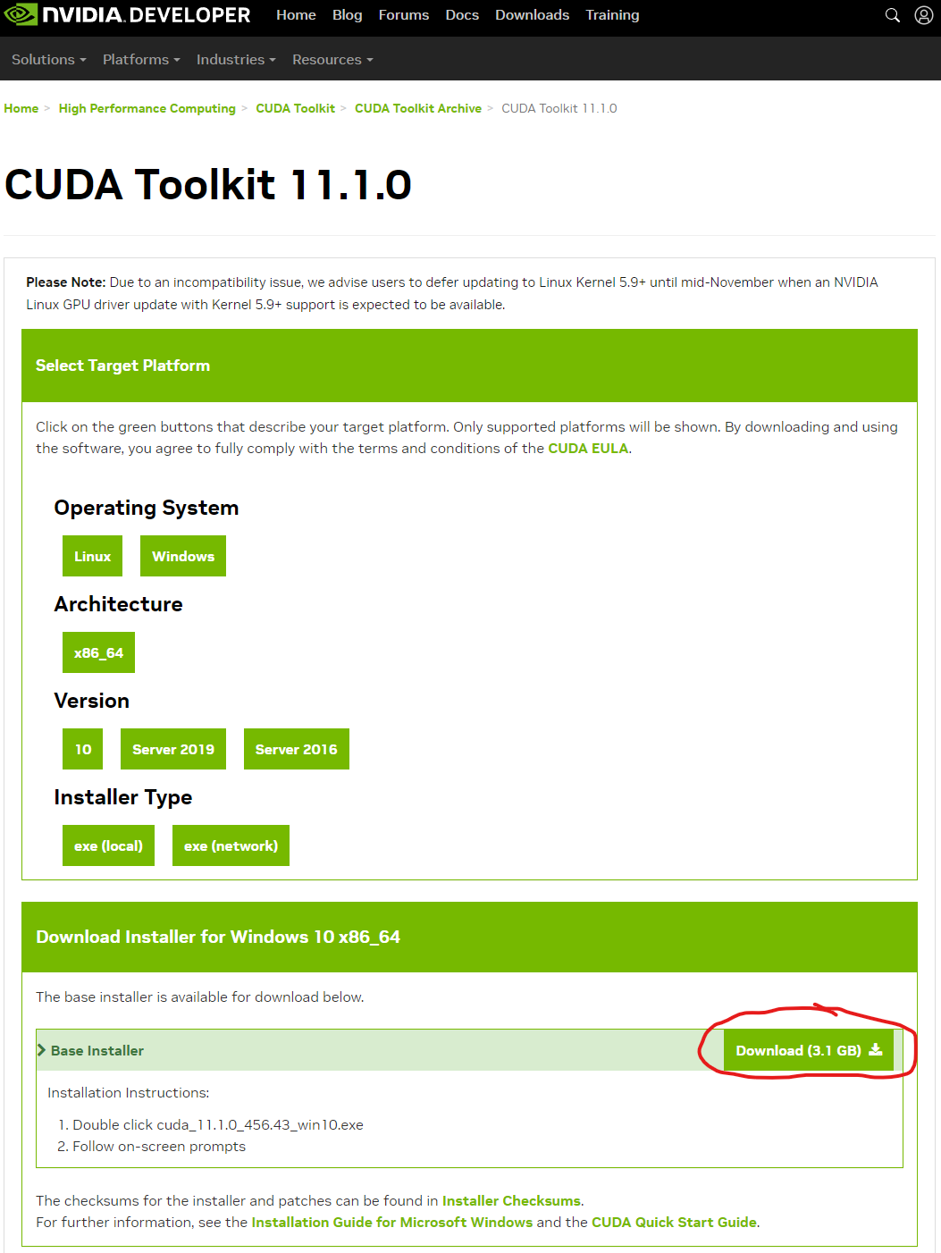 4090 gpu를 사용하는 window11 환경에서 cuda 11.1 버전을 설치하겠습니다 저랑 비슷한 환경인 경우 시도해 보시면 좋을 것 같습니다 stylegan3를 사용하기 위해서는 python 3.8, pytorch 1.9.0(이상버전), cuda tookit 11.1(이상버전) 이 필요하기에 저는 제 컴퓨터와 맞는 cuda 11.1과 cudnn 8.1.1로 설치하였습니다 1. CUDA 설치 먼저는 밑에 링크에 들어가셔서 cuda 11.1을 설치해 줍니다 https://developer.nvidia.com/cuda-11.1.0-download-archive CUDA Toolkit 11.1.0 Get CUDA Toolkit 11.1.0 for Linux and Windows. developer.nvi..