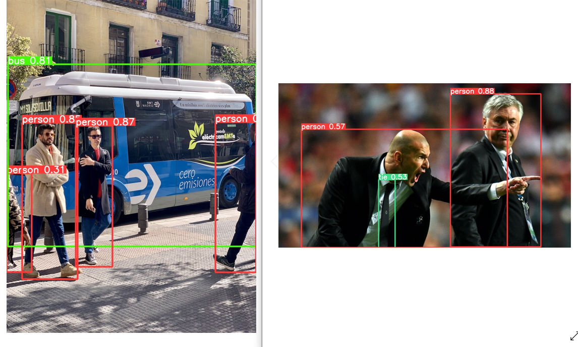 - yolov5폴더 안에 run/detect/exp 폴더안에 밑에 처럼 사진에 객체감지(object detection)가 된다면 성공입니다