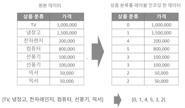- 변수1(객체) : LabelEncoder() : 레이블인코더 클래스를 객체로 생성